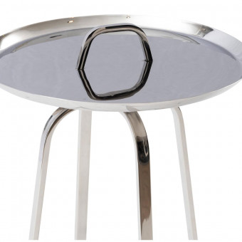 AvailableThe Alicudi End Table is a sleek side table with a round table top and a sleek four-legged base. There is a practical handle on the table top to move the table. The modern, black iron side table has a diameter of 40 centimeters. Ideal for a cup of coffee or a small snack.