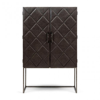 The eye-catcher among eye-catchers: the La Villette Bar Cabinet. The cabinet resembles dark wood at first glance, but nothing could be further from the truth. This cabinet is completely upholstered in gorgeous espresso pellini leather with a so-called diamond stitch. The interior features a wooden frame of a mix of recycled wood types and the legs are made of rugged metal.