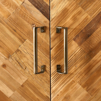 - About 80 to 120 years later, we reuse these front doors 'untouched' for parts of new furniture such as table tops, cabinet doors and drawer fronts. The furniture thus acquires a natural, weathered look. The pre-used doors are brushed clean, rinsed off and sawn to the exact dimensions of the furniture item. The imprints of hinges, locks and door handles are still clearly visible, making each piece of furniture a unique piece. Old, worn and pure nature.