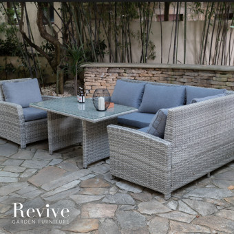 As beautiful as it is practical, The Kansas Corner Set makes no compromise on delivering a luxury outdoor dining experience. With seating for up to 6 people, this stylish modern sofa set is ideal for entertaining and bringing the family together in your outdoor living space. Designed with the best all-weather rattan, crafted from a high-quality rattan weave with varied textures and tones woven around 1.2mm thick frames that are powder-coated. The tabletop is made of 5mm tempered glass for safety.