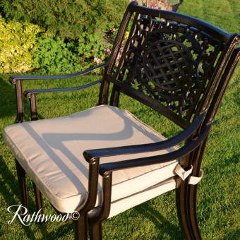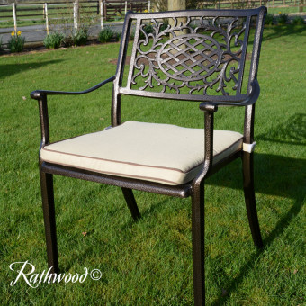 The Lyon 6 Seat is our best-selling cast aluminium set because it’s durable, practical and stylish and comes with a built-in Lazy Susan making it perfect for your outdoor area. It is made from cast aluminium with a highly attractive hammered bronze finish and is complete with cream seat cushions. It needs little or no maintenance and is completely rust-free! The chairs stack making them convenient for storage and the cushion covers are easy to clean.