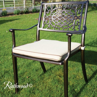 The Lyon 8 Seat is our best-selling cast aluminium set because it’s durable, practical and stylish and comes with a built-in Lazy Susan making it perfect for your outdoor area. It is made from cast aluminium with a highly attractive hammered bronze finish and is complete with cream seat cushions. It needs little or no maintenance and is completely rust-free! The chairs stack making them convenient for storage and the cushion covers are machine washable.