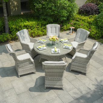 Introducing the Ravenna 6-Seater Set in a captivating, white-washed finish, a luxurious addition to any garden or patio. Whether you're indulging in fine dining or enjoying a relaxed morning coffee, this set offers durability and sustainability, ensuring years of enjoyment. The high-back chairs not only provide optimum support and comfort but also add a stylish touch to your outdoor space, elevating your dining experience to new heights.