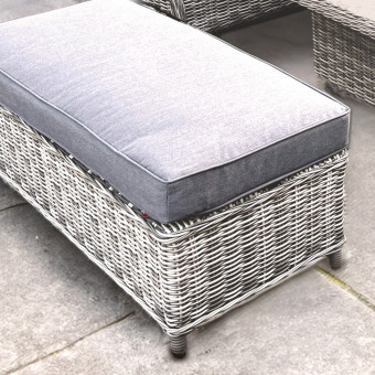 Introducing the Vienna - Light Grey - Large Corner Sofa Set, a sophisticated space-saving seating solution for a variety of outdoor activities. This set features a manually adjustable table and two small stools, providing valuable additional seating or versatile relaxation options. Whether you're dining, relaxing, or entertaining, the set's wide grey weave, slate grey ceramic glasstop, and deep, comfortable grey cushions provide an inviting and stylish outdoor haven. The timeless traditional charm of the Vienna - Deluxe Large Corner Sofa Set Set effortlessly integrates with your outdoor living space, adding an air of elegance and creating a welcoming atmosphere for outdoor dining.