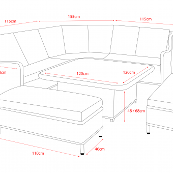 Table Dimensions: Length: 120 cm x Width: 120 cm x Height: 68/48 cm